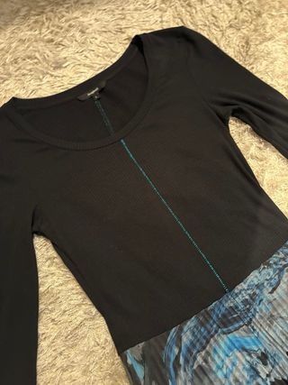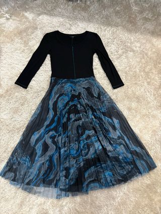 Sin estrenar ( fue un regalo, ideal pero no mi estilo Falda midi con fondo negro destacando su estampado de flores y mariposas, donde los colores predominantes están en la gama de azules Elegante diseño, con doble capa de tul, que le otorgan fluidez y movimiento; la de abajo, en color negro y la de arriba, con el estampado Debajo de las mismas, lleva forro negro Cintura con goma elástica, que se ve bien en fotos No incluye el cinturón ( si interesa comprarlo, está también sin estrenar y puedo venderlo) Talla S: 36 europea Una prenda hiper femenina, original y diferente, para lucir en tus looks más lady