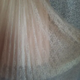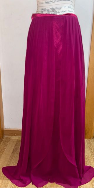 Falda larga de tul con cinturón de satén. - Tejido ligero y vaporoso. - Diseño de corte amplio. - Ideal para eventos o disfraces. Era un vestido y fue cortado, el bajo no esta perfecto tampoco pero haciendo apaños puede aprovecharse muy bien, es buena tela.