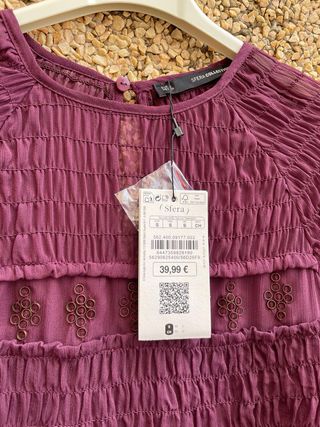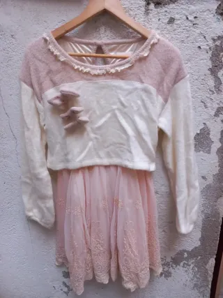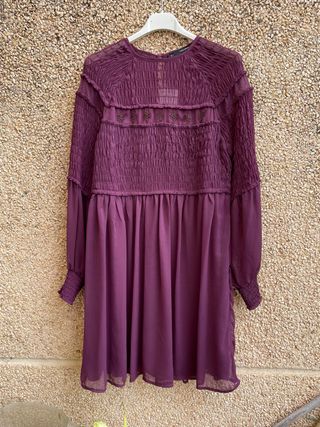 Vestido de Sfera sin estrenar, con un bonito detalle de tul. - Diseño con cuerpo fruncido. - Mangas largas abullonadas con puño. - Falda con vuelo.