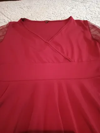 Vestido elegante de manga larga con un diseño cruzado en la parte superior y falda con vuelo. Nuevo Talla-L Con mangas transparentes - Mangas transparentes de tul. - Tejido elástico para mayor comodidad.