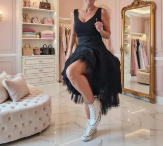 Falda negra con vuelo y tul