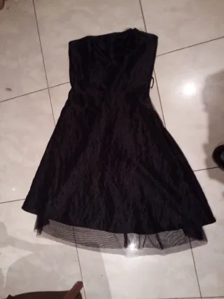Vestido tul negro Cuerpo forma de corsé palabra de honor y falda con tul haciendo pequeña cola Queda espectacular puesto!