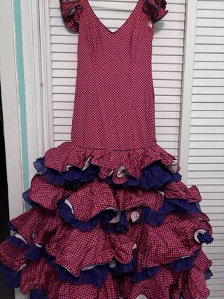 Traje de flamenca azul Tela elástica . Muy cómodo