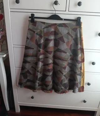 Falda Desigual de invierno estilo patchwork combinación de diferentes tejidos y estampados. Cierre cruzado con botones Excelente estado, talla 44