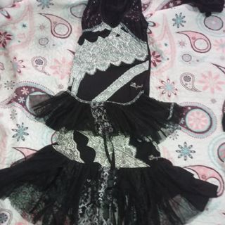 Falda corta con un diseño único y llamativo. - Estampado abstracto en tonos grises y negros. - Detalle de tul en la bajera. - Tiras de ajuste con estampado de rayas rojas y negras. Comprada hace más de 15 años; poco uso; en buenas condiciones. se vende porque hace años que no la uso. Recogida en Bormujos o envío por wallapop