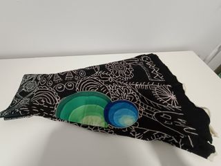 Falda Desigual con un diseño vibrante y original. En perfecto estado. - Estampado floral y de ramas en tonos oscuros. - Detalles circulares en azul y rojo. - Bordados de colores vivos. - Figura de mujer y mariposa. - Nombre de la marca Desigual bordado. 100%Algodon. Talla S La cintura es elástica y se puede ajustar con el cordón. Medidas Cintura 72 cm. Largo 60 cm
