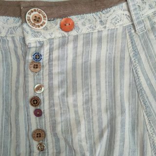 Preciosa minifalda con diseño único. Ideal para un look original y moderno. - Diseño de rayas verticales en blanco y negro. - Detalles bordados a mano. - Cierre de botones. - Bolsillo funcional.