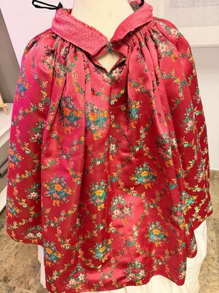 Traje tradicional de fallera con un diseño vibrante y detallado. - Tejido principal con estampado floral. - Delantal de encaje blanco con motivos florales. - Mangas con volantes de encaje. - Adornos de cinta fucsia. - Necesita limpieza y algunos descosidos -Se puede sacar bastante sobre todo de largo -Las manteletas también se puede sacar -Entra cancán -la talla mi hija tenía 11 años ,pero pongo medidas de como está pero se puede hacer para más años Tanto la falda como el cancán tienen tirantes para ir más segura
