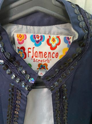 traje de flamenca compuesto de 3 piezas, Falda, maillot y mantoncillo, en perfecto estado, como nuevo, color negro y azul, talla 38, 32cm de cintura.