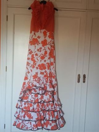 Traje Flamenca Naranja y Blanco. Talla 38