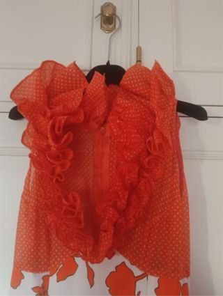 Falda para el Rocío color naranja con círculos blancos, es hecho por modista, no es de tienda, es bastante comoda.