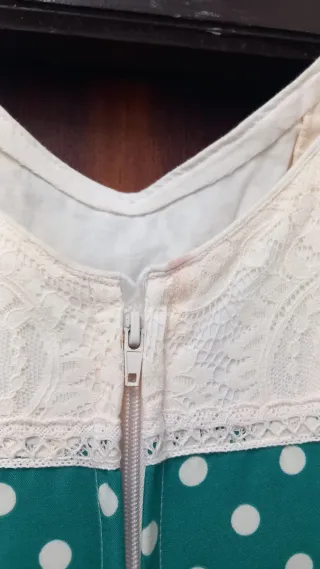 Falda blanca con lunares en color turquesa, talla 36-38. Tengo corpiño blanco que vendo aparte.