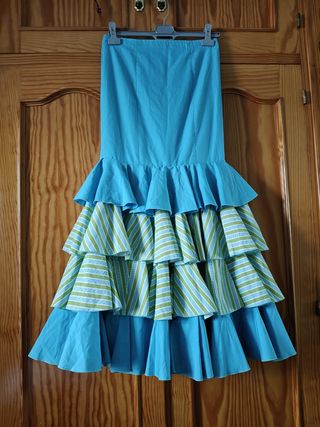 Falda flamenca volantes azul y verde