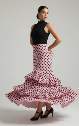 Falda flamenca volantes lunares rosa y negro