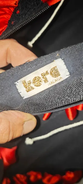 vendo traje de flamenca de falda t blusa en negro y ribeteado en rojo talla 42 tiene tela para sacarle