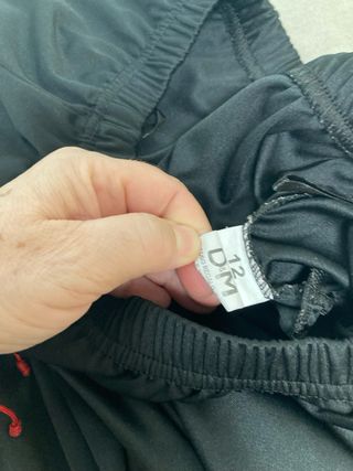 Conjunto de falda y zapatos para niña. - Falda de color rojo, talla 8 (60cm aprox) - Zapatos negros con tira y hebilla, talla 29.