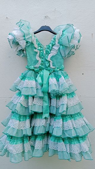 Traje Flamenca Niña Talla 5-6 Verde Agua