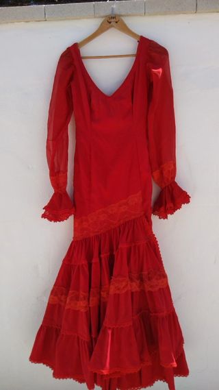 talla 36/38 Hecho en Sevilla. practicamente nuevo,usado una vez. Mangas transparentes y adornos de encaje. Muy buenos acabados con adornos . la vuelta de la falda también tiene adorno de encaje.