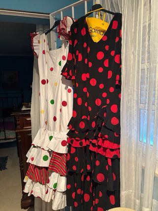 vendo dos trajes de flamenca de Ana Barroso (Triana, Sevilla) se venden juntos o por sepatado. Talla 42. 90 euros cada uno. Muy cuidados.