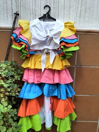 Falda de estilo flamenco con múltiples volantes, ideal para ferias y celebraciones. Es de la tienda de El Rocio. Solo se ha usado 1 vez - Diseño con volantes escalonados.