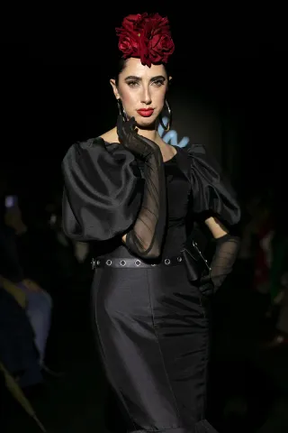 Conjunto de flamenca de color negro, ideal para eventos y celebraciones. - Diseño elegante y llamativo. - Falda con volantes y cuerpo ajustado. - Transparencias en la blusa. Pecho 88 Cintura 70 Cadera 98 Tiene Elegante vestido de flamenca o gitana.