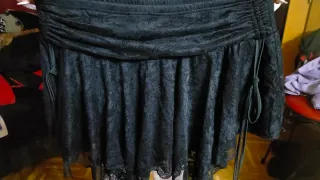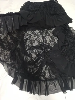 Falda de estilo gótico con un delicado encaje. - Diseño con fruncido en la cintura. - Cordones laterales para ajustar. - Acabado con puntilla en el bajo. Está completamente nueva, es una 52(3XL), se ve en la tercera foto.