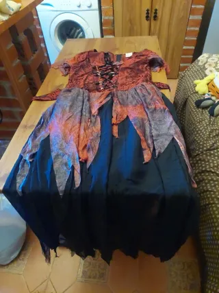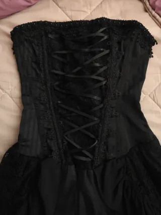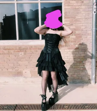 Vestido de estilo gótico. - Corsé con cordones y cremallera en el lateral. En el interior lleva goma para ajustarse mejor a todo tipo de pecho. - Falda con volantes y encaje. - Diseño asimétrico. Puesto una sola vez, como nuevo