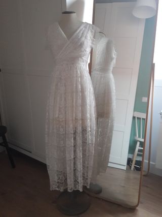 Precioso vestido de encaje con falda corta bajo el vestido largo. Escandinavo, Estilo escandinavo, Calidad, Vajilla, Oportunidad, Diseño, Madera, Estilo, Diseño, Decoración, Estilo Mid Century, Denmark, Germany, Holland, Finland.