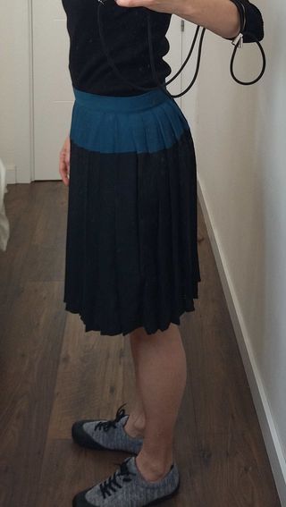 Falda plisada KLING – talla S Colores verde y negro con tablas. Tiene forro y cremallera lateral. Tejido vaporoso, pero no transparente Medidas en las fotos. En buen estado.