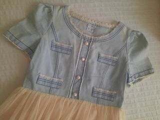 Vestido marca Kling talla 3 o M. Cuerpo denim y falda de tul (no se transparenta). Usado en tres ocasiones. Pregunta sin compromiso! :)