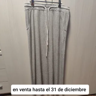 Falda larga con un diseño de rayas finas en tonos grises y blancos. Es cómoda y versátil. - Cintura elástica con cordón ajustable. - Bolsillos laterales. - Tejido suave y ligero.