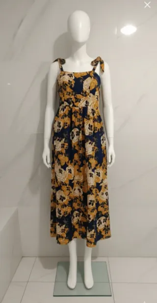 Vestido largo floral azul y amarillo Talla M