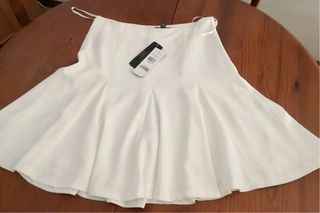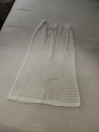 Falda larga de Stradivarius con un diseño plisado elegante. Puesta 2 veces. - Color blanco. - Cremallera a un lado. - Largo hasta los tobillos (depende de tu altura). - Tejido ligero y fluido.