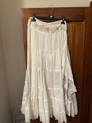 Falda larga de estilo boho, 100% algodon - Diseño con bordado floral en la parte superior. - Cintura elástica.