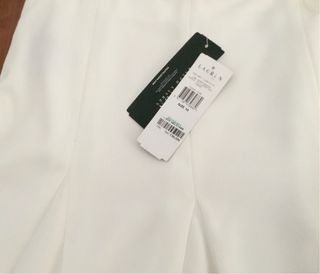 Falda elegante de Ralph Lauren, ideal para cualquier ocasión. Aún conserva sus etiquetas originales. - Diseño vuelo, con quillas o nesgas. Forrada. - Lavable a máquina. - 56 cm de largo, 40/41 media cintura. - Tejido ligero y fluido. - Sin estrenar.