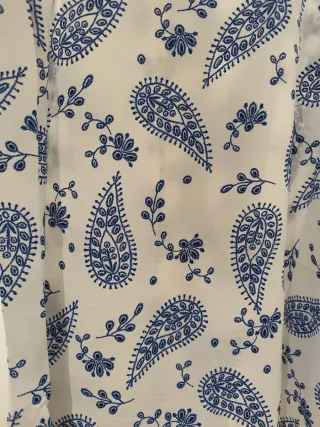 Falda larga blanca con estampado de cachemir en azul. Ideal para un look casual o elegante. - Diseño con abertura lateral. - Tejido ligero y fluido.
