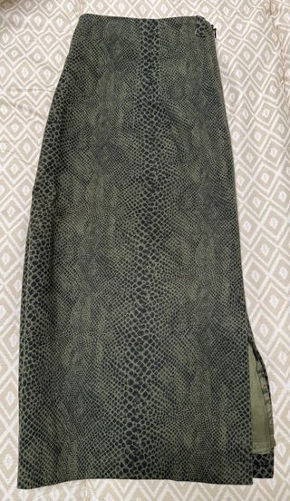 Falda larga de la marca Cortefiel con un llamativo estampado de serpiente. - Diseño con bolsillos. - Cremallera frontal en uno de los bolsillos. Preciosa Elegante Perfecto estado Cintura de lado a lado 41 cm Cadera de lado a lado 53cm Largo falda 58cm Forrada