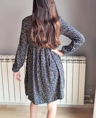 Vestido de manga larga con estampado floral para niña, talla 12 años. - Cuello redondo con detalle. - Cierre de botones en la parte delantera. - Cintura elástica. - Falda con vuelo.