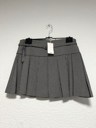 Falda MANGO de temporada, totalmente nueva con etiqueta, en talla XL. Diseño plisado con estampado pata de gallo. Incluye cinturón a juego Nunca usada, en estado impecable. Ancho cintura: 48cm Largo: 41 cm 📦 Envío rápido y bien protegido 🙌🏻