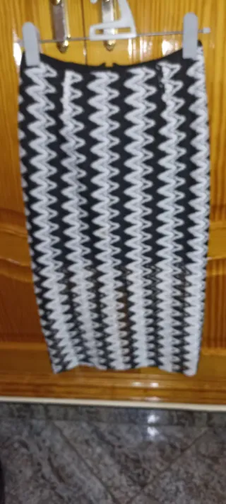 Falda midi de tubo con un llamativo estampado de zigzag. - Diseño ajustado. Sin elastano. - Largo midi. - Costó 35€, del 2023. * Miren mi perfil porfa, la mitad de la ropa que vendo es actual, la vendo porque he engordado, no porque no me guste. Las fotos me salen mal, vengan a probar sin compromiso.