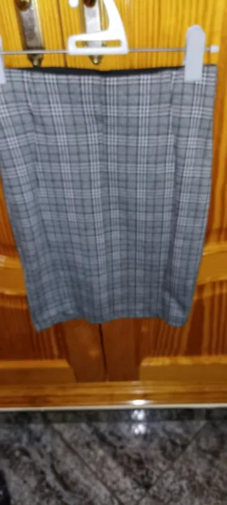 Falda de corte tubo y largo midi, con un estampado de cuadros clásico. - Diseño de cuadros en tonos grises, blancos y verdes. - Largo midi, ideal para combinar con diferentes estilos. - Costó 25,99€, del 2022. * Miren mi perfil porfa, la mitad de la ropa que vendo es actual, la vendo porque he engordado, no porque no me guste. Las fotos me salen mal, vengan a probar sin compromiso.