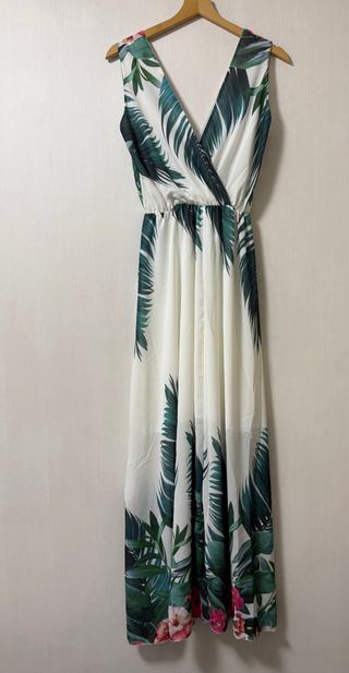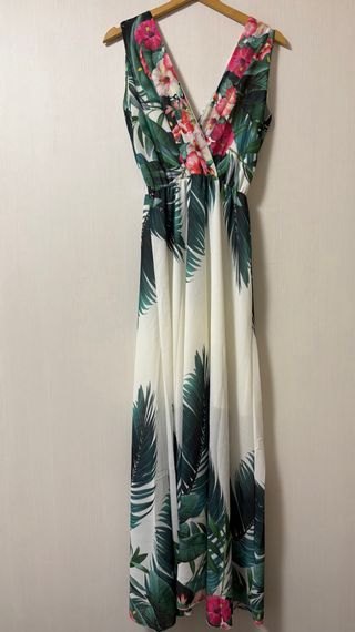 Vestido largo estampado tropical