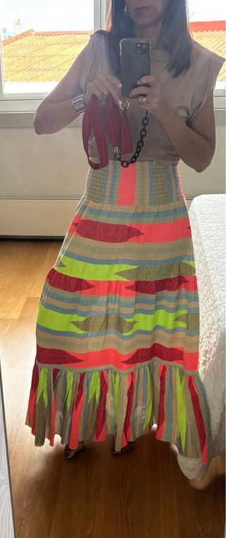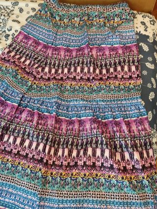 Falda larga multicolor boho chic. Maravillosa