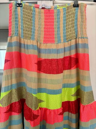 Preciosa falda larga con estampado multicolor. Ideal para cualquier ocasión. Sin estrenar. Comprada ahora en Agosto en tienda de Menorca. Su precio fue de 50€. - Diseño colorido y alegre. - Estampado llamativo. - Corte favorecedor con goma en la cintura.