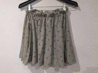 Falda gris claro con estampado de lazitos azules. Tiene un cinturón que se puede quitar. Largo de la falda 40cm aproximadamente. La cintura tiene goma, sin estirar son 30cm y da de si hasta los 42cm aproximadamente. Talla 30/40 Visita mi perfil. Acepto ofertas razonables en todos los artículos. Descuento si compras más de un artículo.