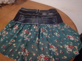 Sin uso, sin etiquetas. Es vaquero y gasa estampada. La parte de atrás mas larga