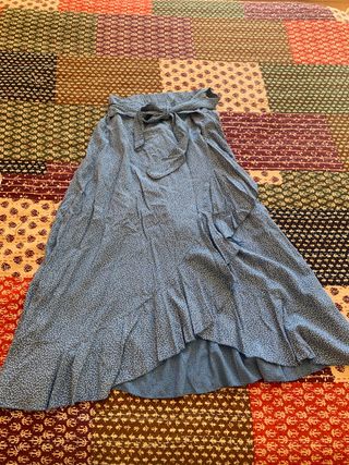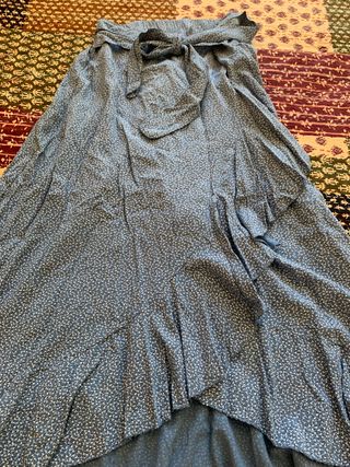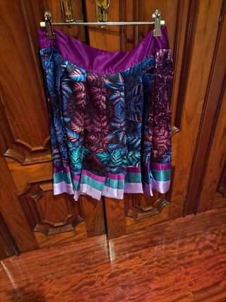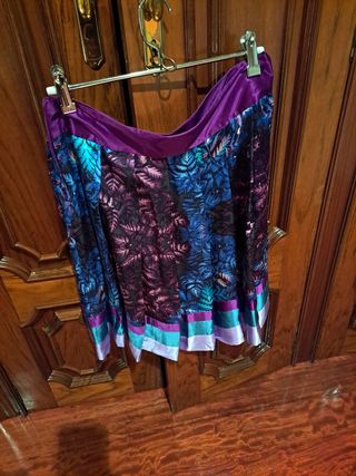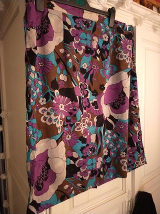 Falda estampada,lleva una falda corta debajo que la cubre otra larga Mide 1,10 de larga y 70 de cintura Sería para una talla M / L Sin estrenar Su precio fue de 129.