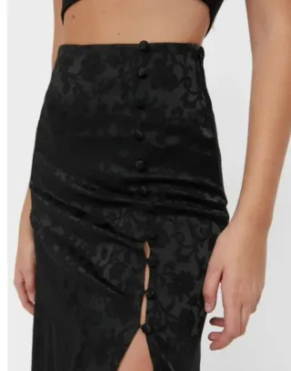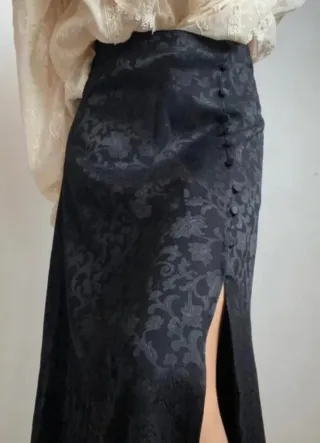 Falda larga de Stradivarius con estampado floral y detalle de botones. Tiene abertura lateral y tela fina satinada. Como nueva, puesta una sola vez. 📍Entrega en mano en Collado Villalba o envío.