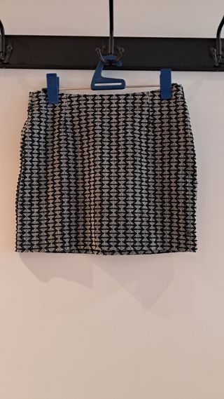 Falda corta de la marca Terre & Mer, en estampado blanco y negro. Talla 38, medidas: largo 39 cm, cintura 78 cm. Con cremallera invisible lateral. Prenda sin usar, entregada lavada.