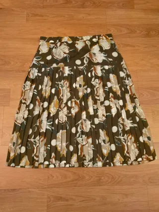 Hago descuento por lotes. Falda larga con un bonito estampado floral y lunares. El diseño plisado le da un toque elegante. - Diseño plisado. - Estampado floral y de lunares. - Largo hasta la rodilla. - Cierre de cremallera y botones